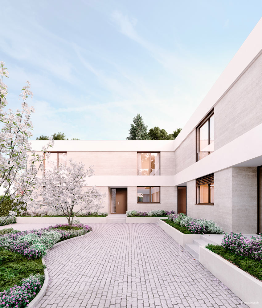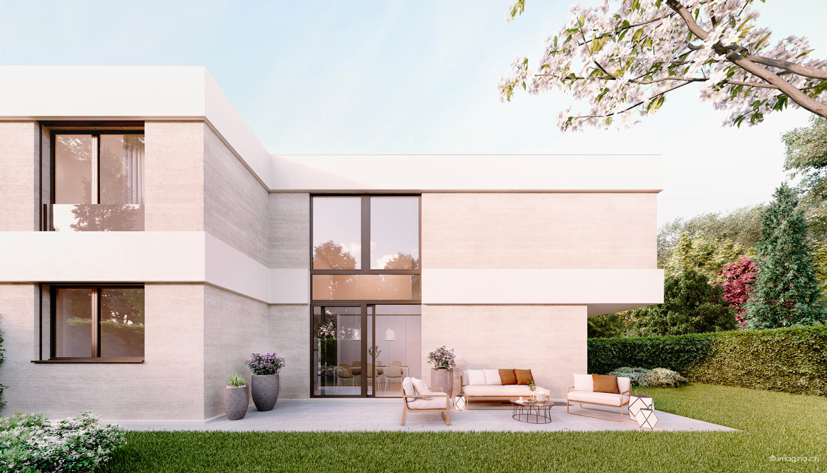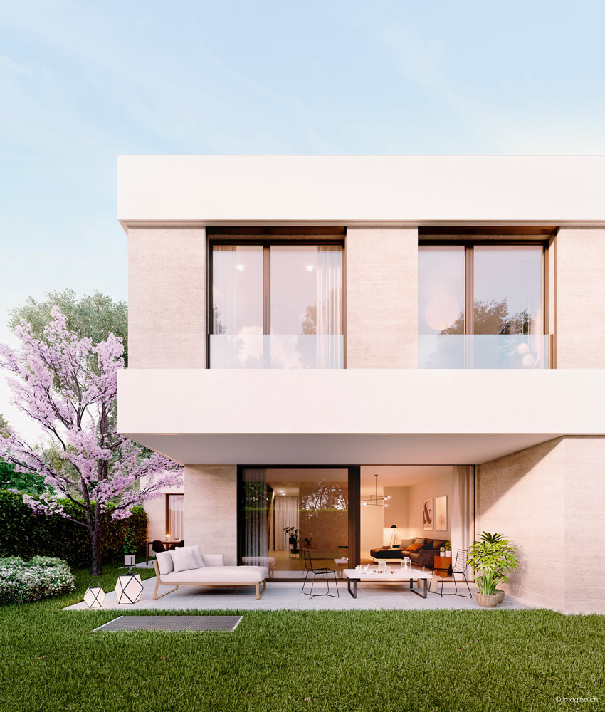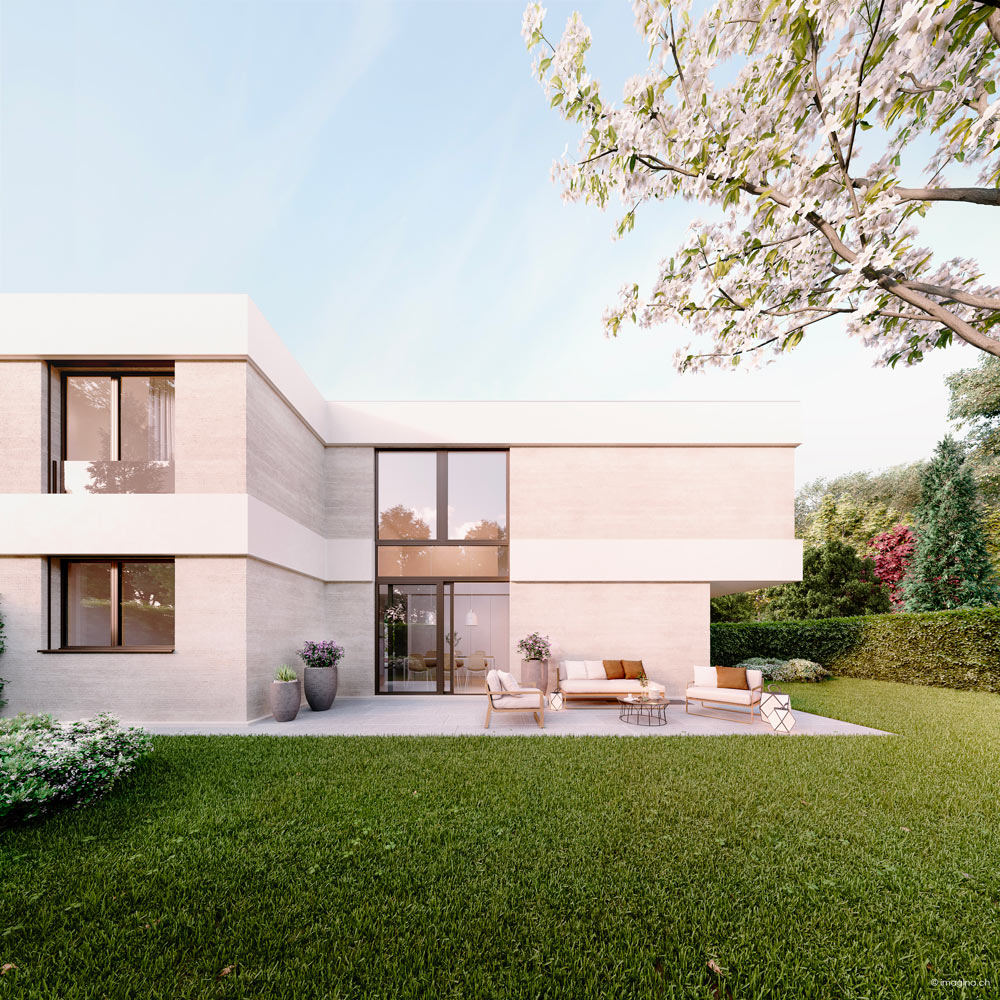 L’urbain rencontre la verdure ! Les cinq villas de La Résidence sont dessinées par notre bureau d’architecte, Clivaz Architectes. Elles offrent un art de vivre moderne entre l’animation, les facilités de Vésenaz, et la zénitude de la verdure environnante. Une oasis verte à seulement trois minutes en voiture des commerces. Les villas sont disposées autour d’une belle cour pavée qui donne à l’ensemble son caractère accueillant. L’absence de vis-à-vis garantit aux habitants de chaque maison une parfaite intimité.Architecture moderne